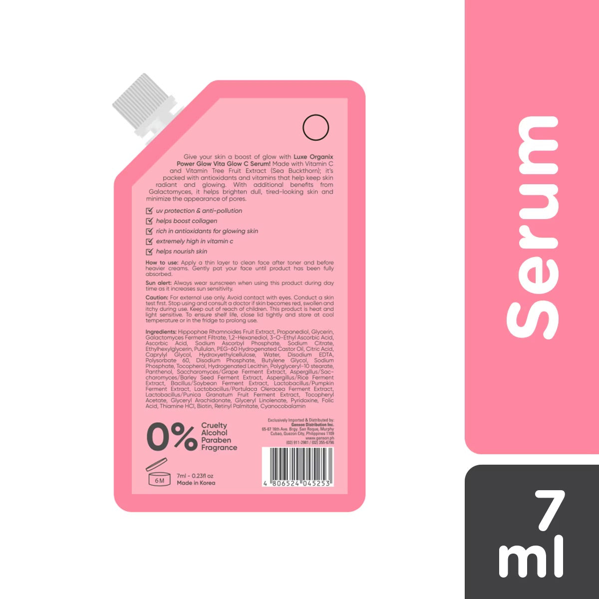Give your skin a boost of glow with Luxe Organix Power Glow Vita Glow C Serum! Made with vitamin C and Vitamin Tree fruit extract (sea buckthorn); it's packed with antioxidants and vitamins that help keep skin radiant and glowing. With additional benefits from galactomyces, it helps brighten dull, tired-looking skin and minimize the appearance of pores.